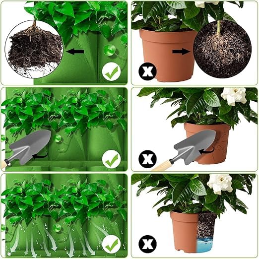 - 🍀🍀【ملاحظة مهمة】لتجنب تلف الماء المحتمل للجدار، من الأفضل الحفاظ على فجوة من الحائط وأكياس الزراعة، أو يمكنك إضافة طبقة مقاومة للماء بينهما.