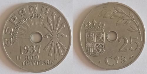 Generic - عملة أسبانية قديمة نادرة جدا ( 25 سنتيمو 1937) - حالة ممتازة