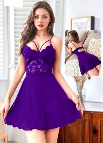 Generic - قميص نوم لانجيري قصير بيبي دول بنفسجي مثير جدا فري سايز