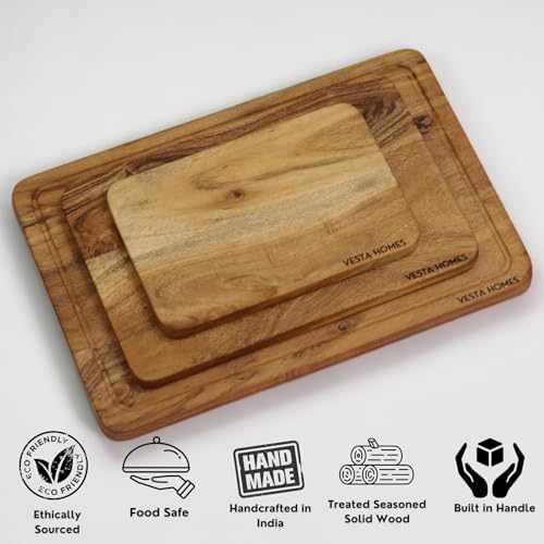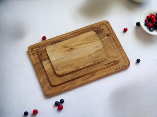 Vesta Homes - الواح تقطيع للمطبخ من فيستا هومز، مجموعة الواح تقطيع خشبية كبيرة من 3 قطع | لوح اكاسيا تشاركوتيري | صواني خشبية للحوم ولوح تقديم الفواكه والخضروات والجبن | (15×10، 12×8، 9×6 انش)