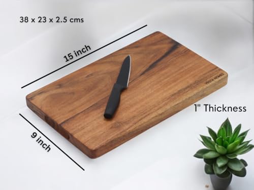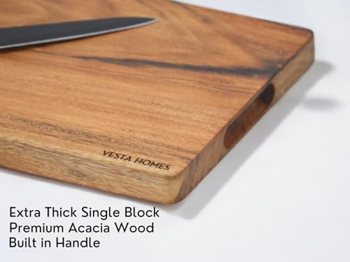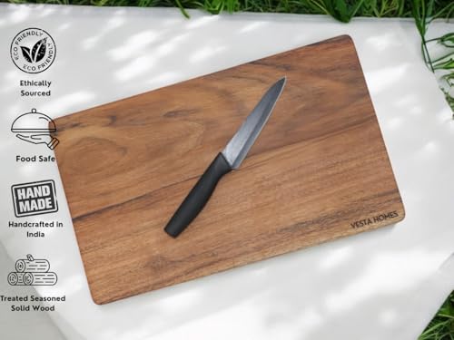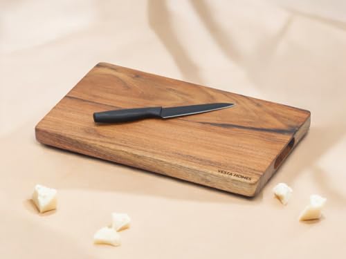 Vesta Homes - لوح تقطيع خشبي من فيستا هومز لخضروات المطبخ والفواكه والجبن | خشب اكاسيا طبيعي | لون طبيعي، 38 × 23 × 2.5 سم | مصنوع يدويا في الهند
