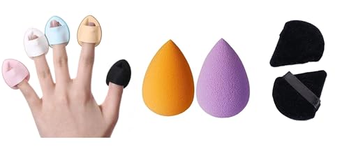 VETELLY - مجموعة من 5 إسفنجات أصابع صغيرة + 2 إسفنجة مثلثة + 2 أداة دمج لمستحضرات التجميل من فيتيلي