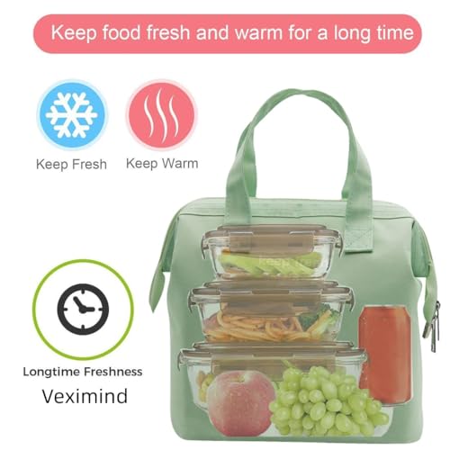 Veximind - لانش باج معزولة من فيكسيمايند، لانش باج بينتو بسيطة، لانش باج لحمل اللانش بوكس للنساء والرجال والبالغين في النزهات والعمل والمشي لمسافات طويلة والشاطئ (أخضر)