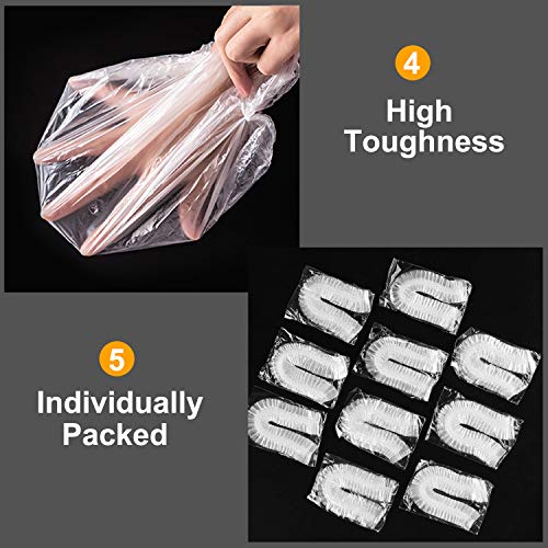- قبعات استحمام مقاومة للماء: مصنوعة من البلاستيك المتين عالي الجودة، أكبر وأكثر سمكًا، بدون شوائب، بدون رائحة كريهة، قبعات استحمام للاستعمال مرة واحدة، مما يضمن عدم التمزق أثناء وقت الاستحمام. استمتع باستحمامك دون الخوف من دخول الماء عبر قبعات الاستحمام الكبيرة جدًا