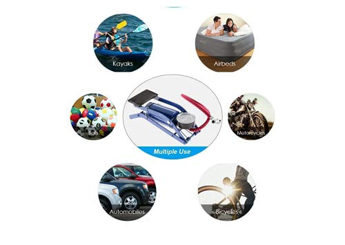 VEZIMON - منفاخ قدم يدوي للسيارة والدراجة الهوائية، ملء هواء سهل بجهد أقل، بلون أزرق