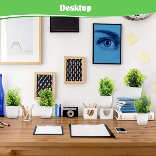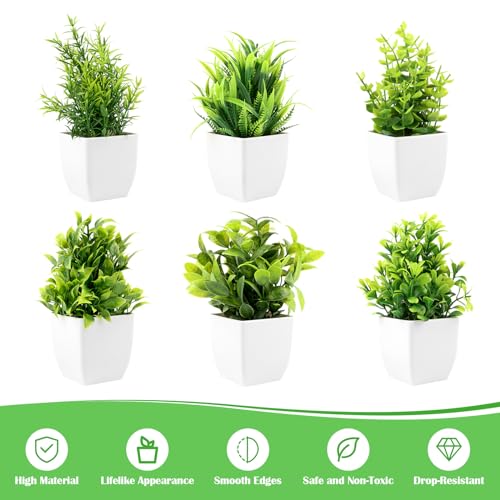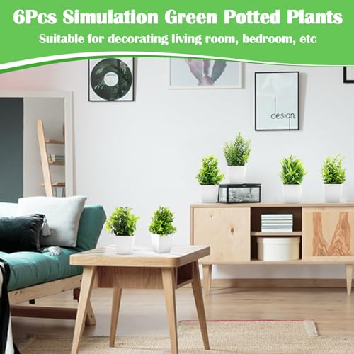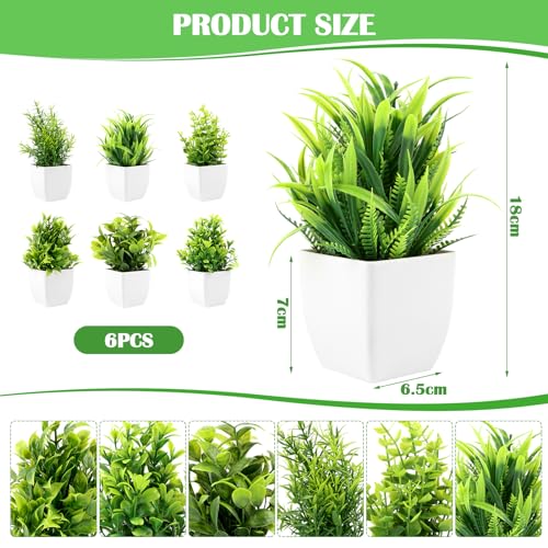 VFANDV - مجموعة من 6 نباتات صناعية من فاندف، نباتات صناعية صغيرة مع أصيص نباتات بونساي، نباتات صناعية بلاستيكية مزيفة من البلاستيك لتزيين المنزل والمكتب والحمام