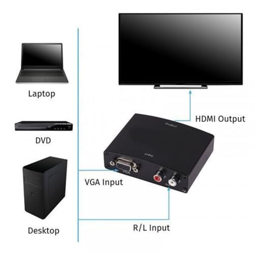 Generic - محول VGA الى HDMI لتوصيل الاجهزة القديمة بمنفذ VGA + مدخل RCA (صوت L/R) باجهزة العرض الحديثة التي تدعم منفذ HDMI بدقة تصل الى 1080 بكسل