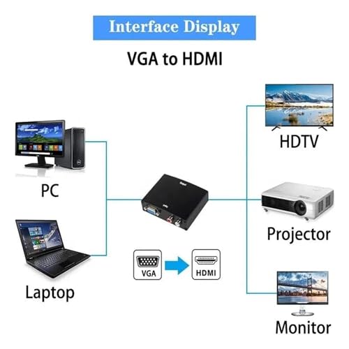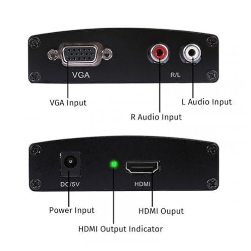 - يقوم الجهاز بتحويل إشارات VGA التناظرية إلى إشارات HDMI مفصلة، كل من الصوت والفيديو في وقت واحد، مما يسمح للأجهزة التي تحتوي على منافذ VGA فقط بالحصول على شاشة أكبر. نظرًا لأنه يعمل بكابل طاقة USB، فهو متوافق مع نطاق واسع مع معظم الأجهزة من تلك التي لا تحتوي على مصدر طاقة.