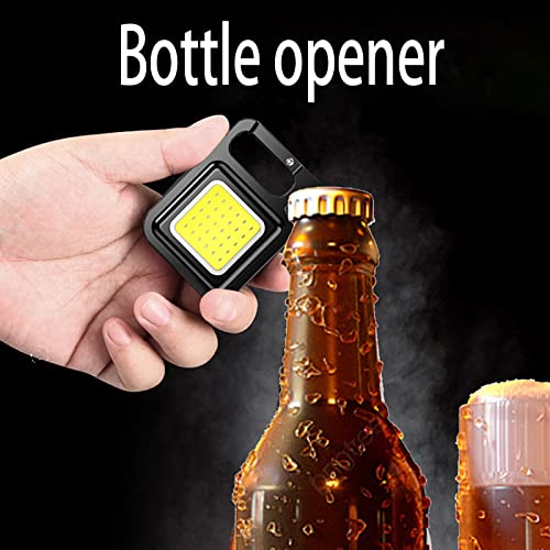 VGE - كشاف يدوي صغير بإضاءة ليد بسلسلة مفاتيح سي او بي من في جي اي، كشاف جيب ساطع 500 لومن قابل لإعادة الشحن ب4 أوضاع إضاءة، مزود بفتاحة زجاجات وقاعدة مغناطيسية للتخييم والطوارئ والصيد والمشي لمسافات طويلة