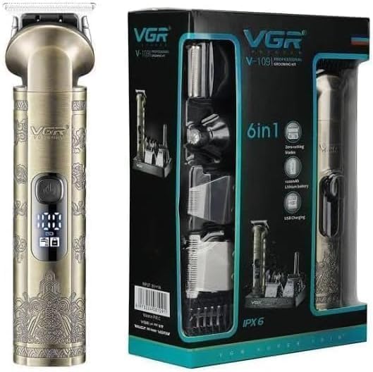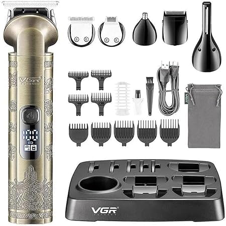 Generic - ماكينة تشذيب اللحية الكهربائية من في جي ار مجموعة احترافية للعناية باللحية للرجال مع شفرات للوجه والجسم والانف والشارب هدايا VGR - 109
