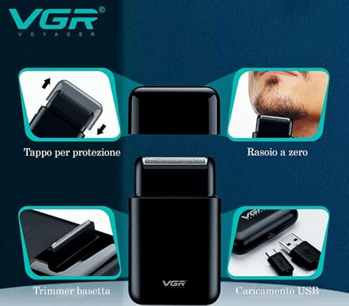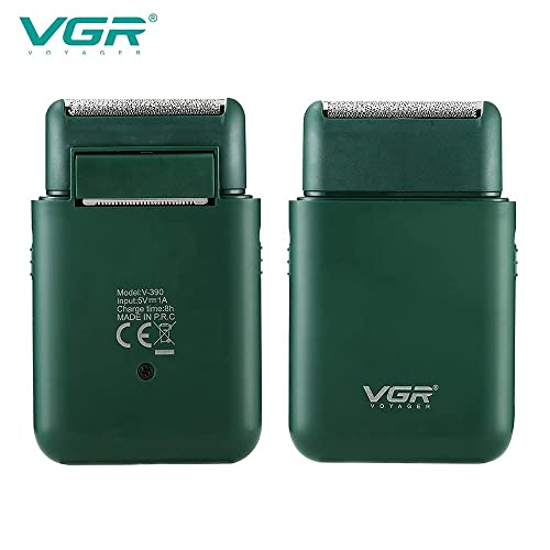 NLIGHTING - ماكينة حلاقة كهربائية في جي ار V-390 للرجال، محمولة وتوضع في الجيب وقابلة لإعادة الشحن بمنفذ USB، رفيعة وخفيفة الوزن بشفرة ثانية منبثقة ،أخضر لايف من أن لايتنج® VGR V-390