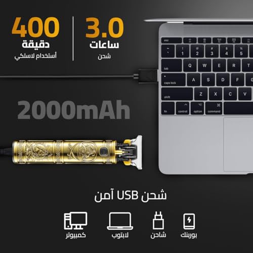 - وظيفة سلكية / لاسلكية: استمتع بمرونة استخدام ماكينة التشذيب مع أو بدون سلك، مما يضمن حلاقة خالية من المتاعب في أي وقت وفي أي مكان.