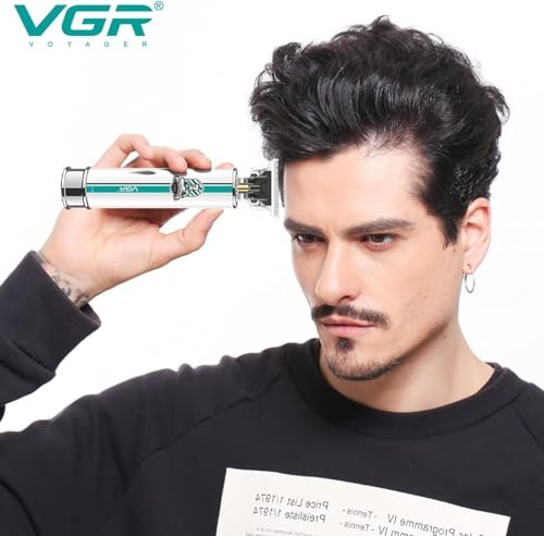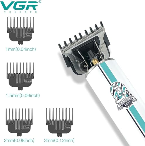 VGR - مجموعة ماكينات احترافية للصالونات لتشذيب الشعر مع 4 فرش بمنفذ USB وبطارية ليثيوم قابلة لاعادة الشحن لـ1400 مللي امبير في الساعة للرجال وافراد العائلة والحيوانات الاليفة، لون اسود VGR V-079، وقت تشغيل