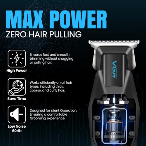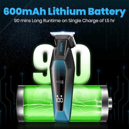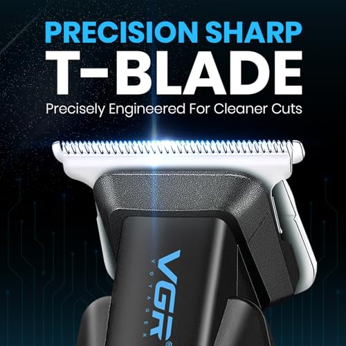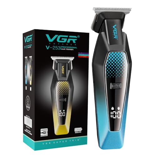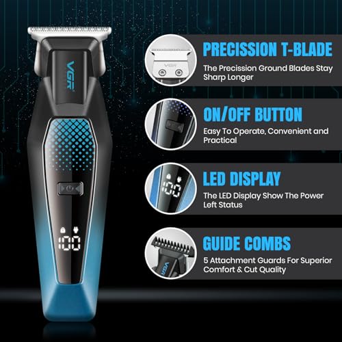 VGR - ماكينة تشذيب الشعر الاحترافية مع شفرة دقيقة T، وقت تشغيل 90 دقيقة، بطارية ليثيوم 600mAh، مع 5 أمشاط توجيه قابلة للتعديل، شحن USB، شاشة ال اي دي للعناية بجودة صالونات التجميل V-253 من في جي آر (أزرق)