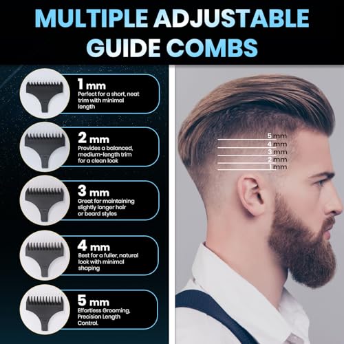 - 【أمشاط توجيه قابلة للتعديل】تتضمن 5 أمشاط توجيه (1-5 ملم) لأطوال وأنماط تشذيب مُخصصة.
