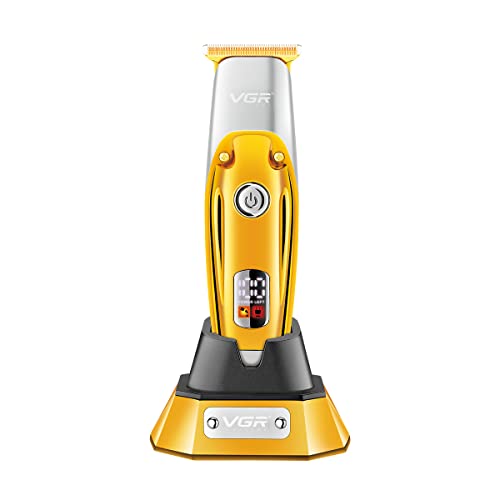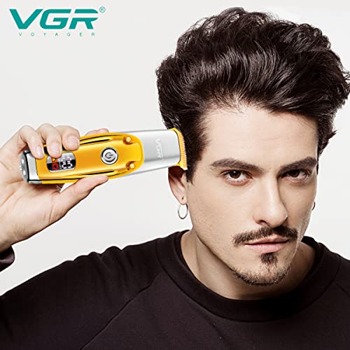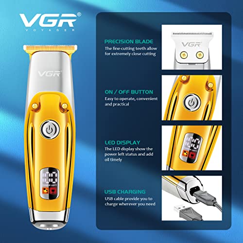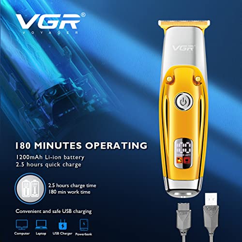 VGR - ماكينة حلاقة احترافية بدون اسلاك موديل V-277 من في جي ار بشاشة ال اي دي وشفرات الستانلس ستيل وكابل شحن USB مع 4 امشاط للرجال. وقت التشغيل: 180 دقيقة بطارية ليثيوم ايون 1200 مللي امبير لون ذهبي