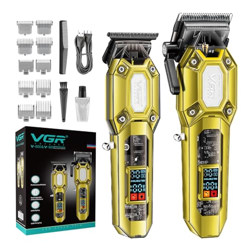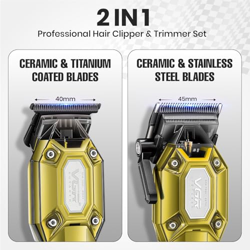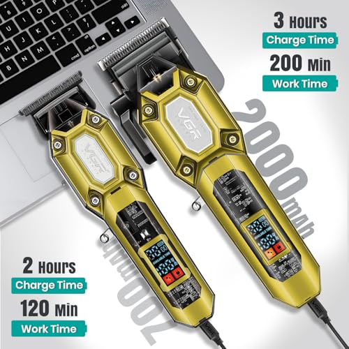 VGR - في جي ار مجموعة ماكينة حلاقة الشعر الاحترافية V-600 وV-900 | محرك 7000 دورة في الدقيقة | وقت تشغيل 200 دقيقة | شفرات من السيراميك والتيتانيوم | شحن USB نوع C | شاشة LED | مثالية للاستخدام في الصالونات