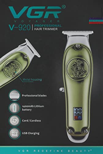 VGR - ماكينة حلاقة احترافية V-920 من المعدن للرجال في جي ار كهربائية لاسلكية وقابلة لاعادة الشحن لتشذيب الشعر