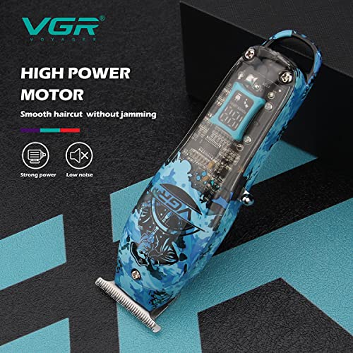 VGR - ماكينة حلاقة الشعر الكهربائية الاحترافية V-923 مع شاشة ال اي دي رقمية لتشذيب اللحية للرجال من في جي ار، وقت تشغيل 150 دقيقة و3 أمشاط توجيه (أسود)