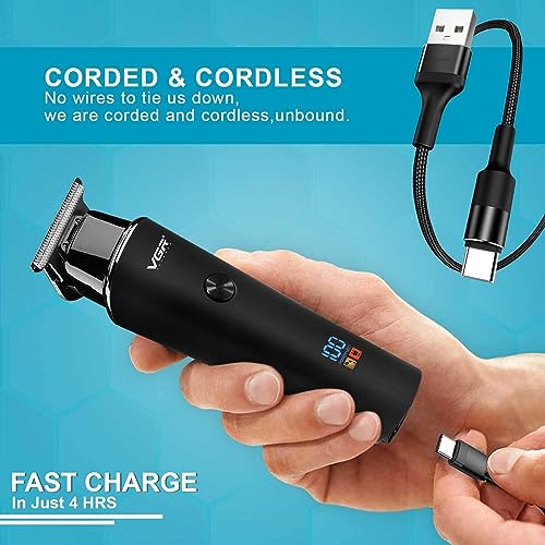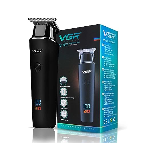 VGR - ماكينة حلاقة دقيقة V-937 للرجال من في جي ار مع شاشة LED، شحن USB، تشغيل سلكي ولاسلكي | 3 ملحقات امشاط توجيه للراحة واختيار التصفيف (اسود)