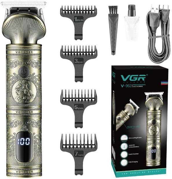 VGR - ماكينة حلاقة شعر احترافية من في جي ار للرجال V-962 - سلك بدون فجوات وتشذيب لاسلكي مجموعة الشعر قابلة لاعادة الشحن تشذيب اللحية والشارب مع شاشة ليد شحن USB هدايا