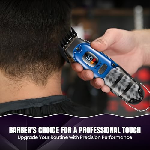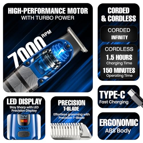 VGR - ماكينة حلاقة احترافية V-981 للرجال من في جي ار، سلكية ولاسلكية مع شاشة ليد ووظيفة وضع التربو ووقت تشغيل يصل إلى 150 دقيقة (لون أزرق)