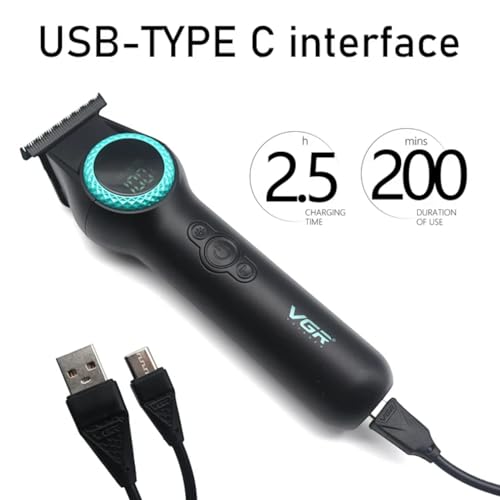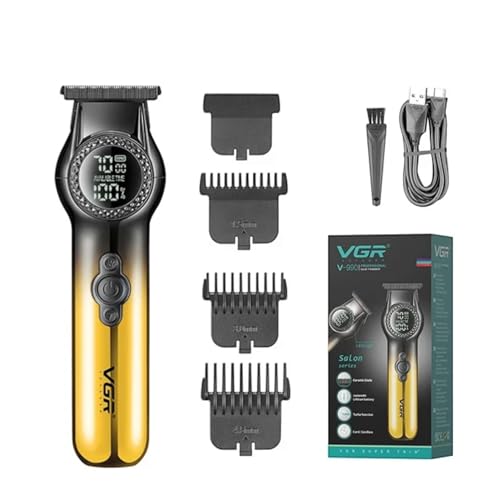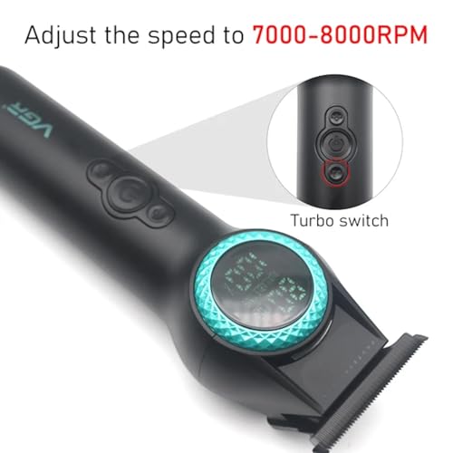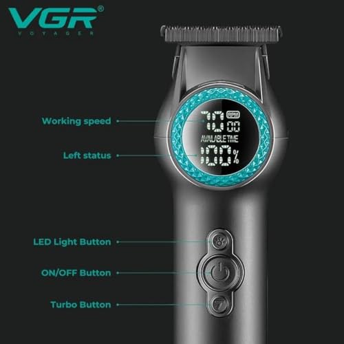 VGR - ماكينة حلاقة شعر احترافية بدون فجوات بسرعتين 8000 دورة/الدقيقة وشفرة سيراميك ومسحوق معدني وشاشة رقمية وبطارية ليثيوم 2000 مللي أمبير/الساعة من في جي ار، سلكي/لاسلكي، شحن USB نوع سي، موديل V-990