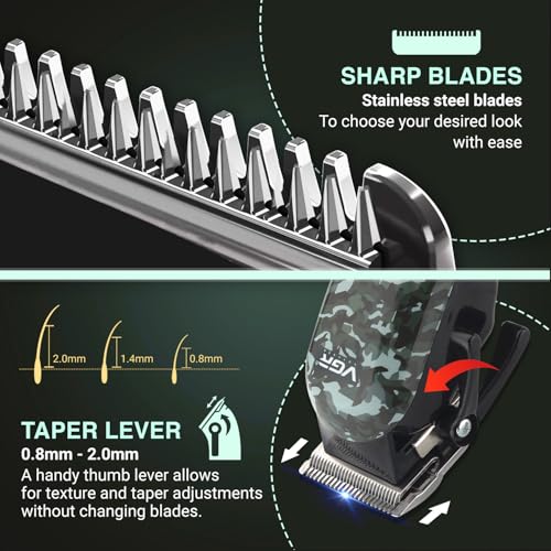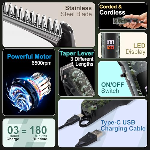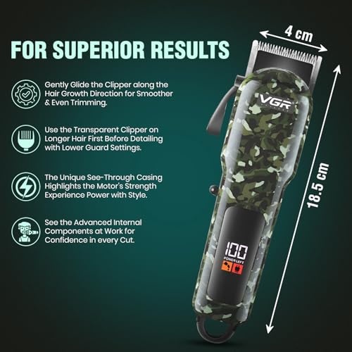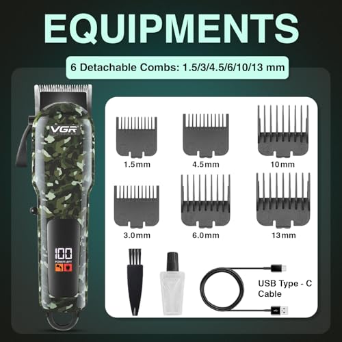 VGR - ماكينة حلاقة شعر احترافية VL-665 من في جي ار صالون مع شاشة رقمية 6 أمشاط قص وقت تشغيل 180 دقيقة بطارية ليثيوم 2000mAh كابل شحن USB-C متعددة الألوان