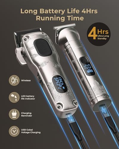 VGRPRO - ماكينة حلاقة الشعر اللاسلكية الاحترافية للرجال لقص الشعر، مجموعة حلاقة وتشذيب الشعر، ماكينة تشذيب الشعر الكهربائية للرجال مع عبوة من Vgrpro، فضي