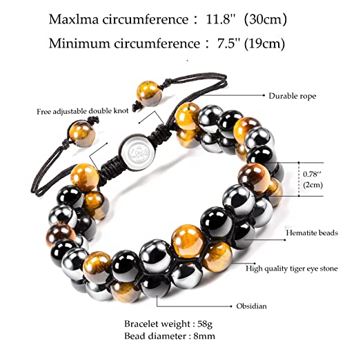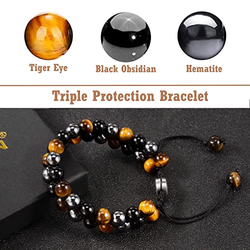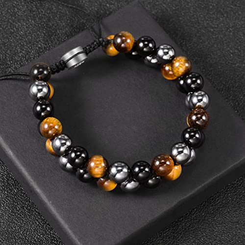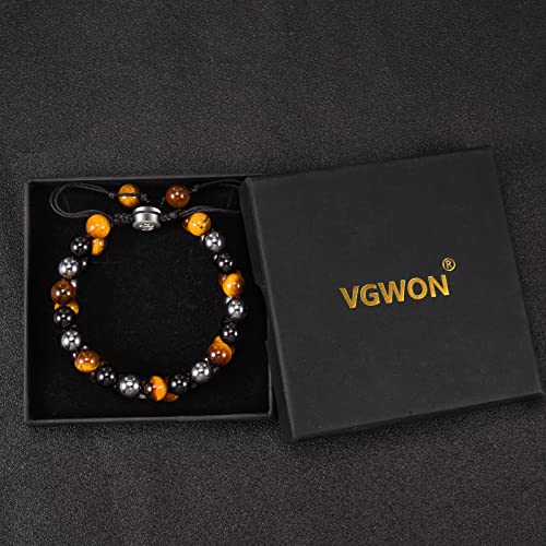 VGWON - في جي وان سوار كريستال للرجال 8 ملم من حجر عين النمر الازرق والزجاج البركاني الطبيعي حماية ثلاثي للكريسماس وعيد الحب الاب هدية لجلب الحظ والازدهار