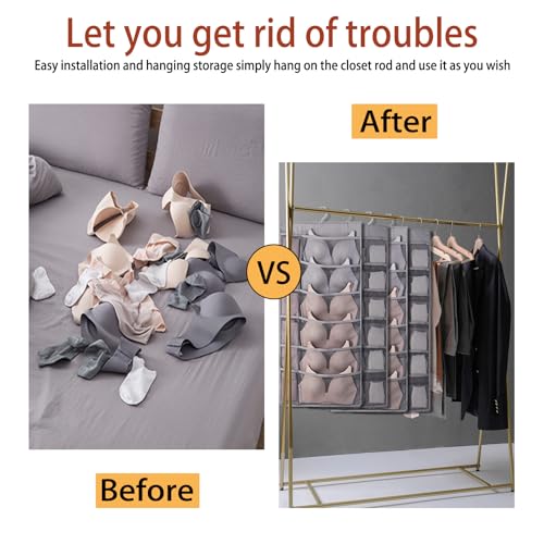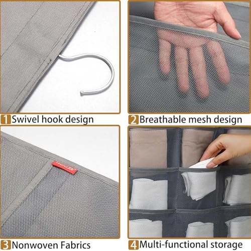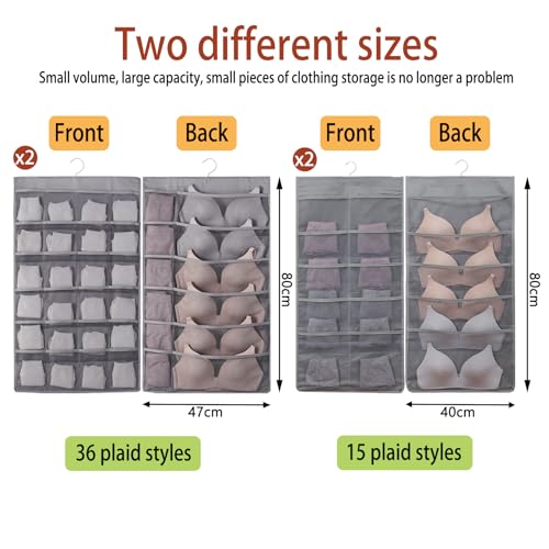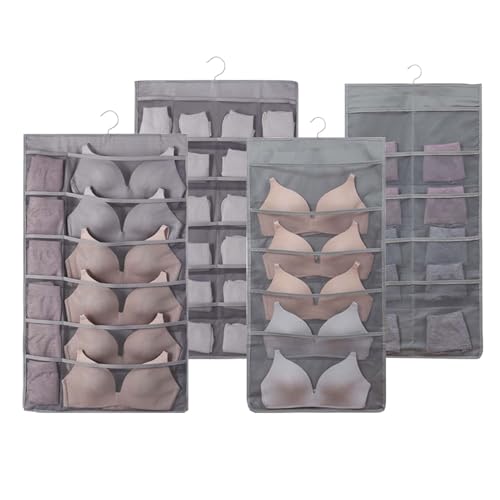 VHYUAH - منظم خزانة معلق مزدوج الجوانب مكون من 4 قطع من في اتش واي ايه ايه اتش، منظم للجوارب، منظم حمالة الصدر، رمادي