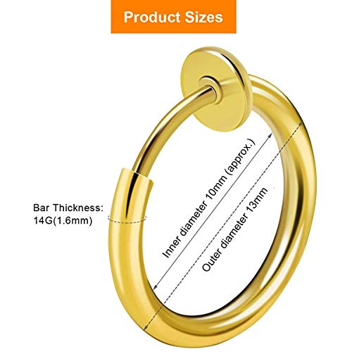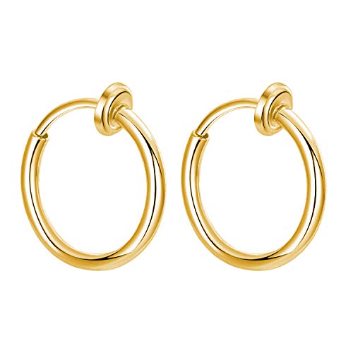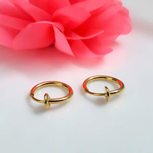 Via Mazzini - حلق مشبك للانف من ستانلس ستيل 316 مقاوم للصدا وبدون ثقوب من معدن غير ثمين مقاس 13 ملم للنساء (1 زوج) لون ذهبي من فيا مازيني, معدن