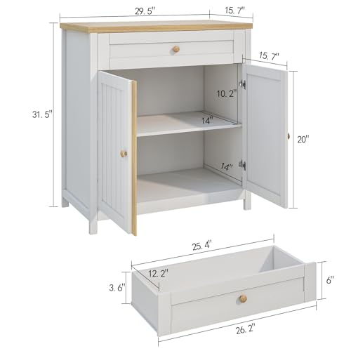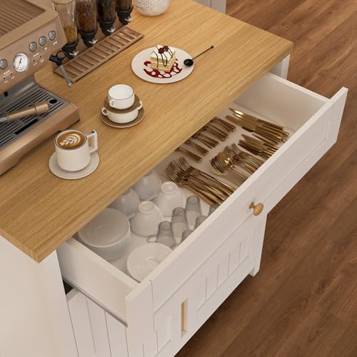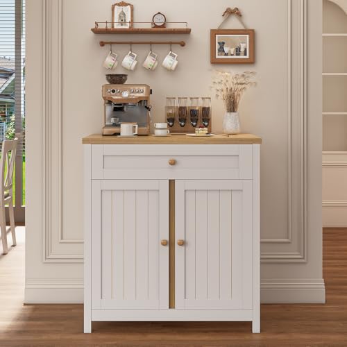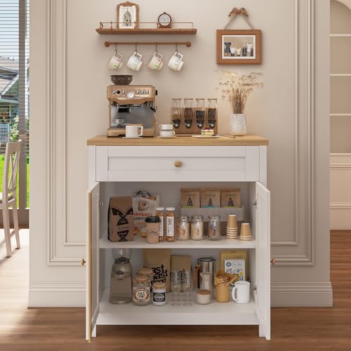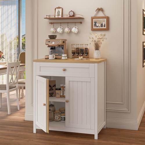 Viaozutis - خزانة تخزين، خزانة بار القهوة، خزانة تخزين المطبخ، بوفيه ريفي عصري مع درج، للمطبخ وغرفة الطعام والمدخل من فياوزوتيس، أبيض
