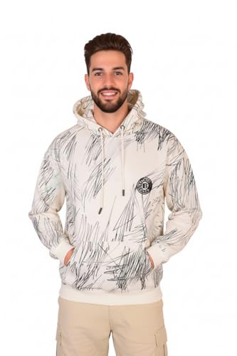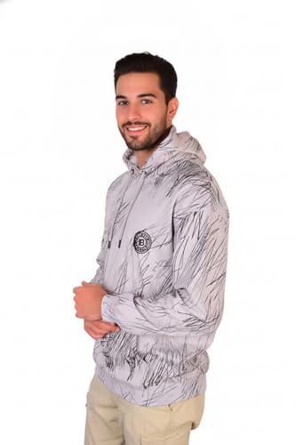 VIBES PREMIUM QUALITY GOODS - Men's Cotton Blend Hoodie, Light Grey with Black Scribble Pattern, Casual Regular Fit