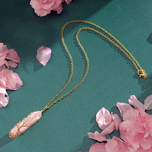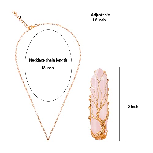 VIBILIA - سلسلة علاجية مزينة بحجر كريم طبيعي سداسي الشكل ملفوف بسلك معدني على شكل شجرة الحياة للرجال والنساء