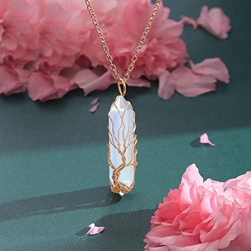 VIBILIA - سلسلة علاجية للرجال والنساء مصنوعة من سلك معدني ملفوف ويتدلى منها حجر كوارتز طبيعي سداسي الشكل فيبيليا