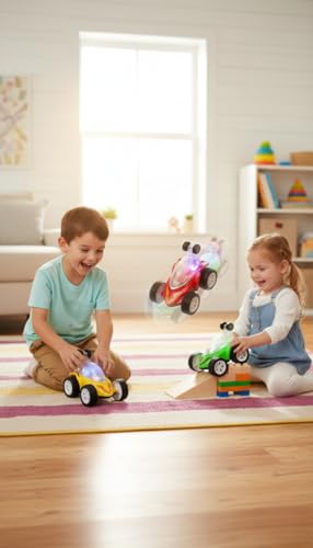 سيارات بهلوانية مضيئة وملونة للأطفال، تعمل يدويًا وتؤدي حركات بهلوانية - ألوان متنوعة