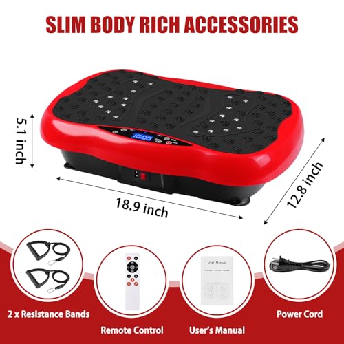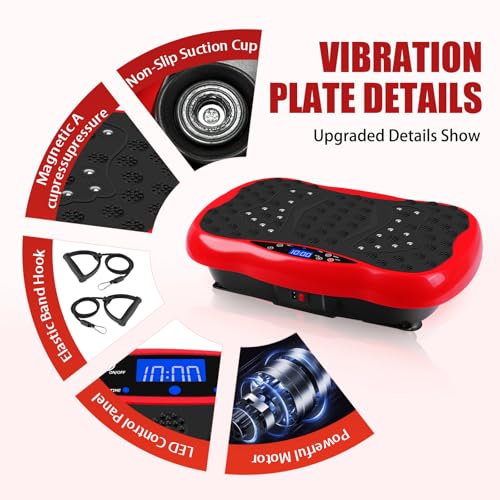 Pofart - جهاز تمرين بالاهتزاز، منصة اهتزاز لكامل الجسم للصحة واللياقة البدنية، جهاز محمول مناسب لخسارة الوزن وتصريف السائل اللمفاوي، مع أحزمة مقاومة وجهاز تحكم عن بعد