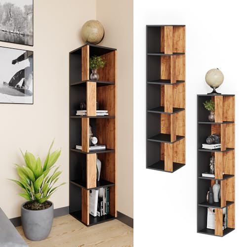 Vicco - فيجو رف زاوية للكتب من ايه ان تي / جي كيه او، رف حائط مقسم للغرفة بـ 5 مستويات، خشب مُصنع، أبيض