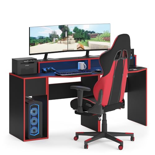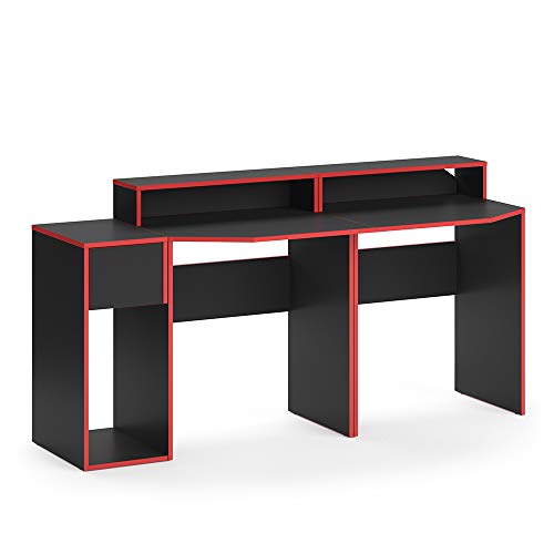 Vicco - مكتب ألعاب كرون، طاولة كمبيوتر مكتبي من فيكو، طاولة مكتب للكمبيوتر (مجموعة من 8 قطع، أسود/أحمر)