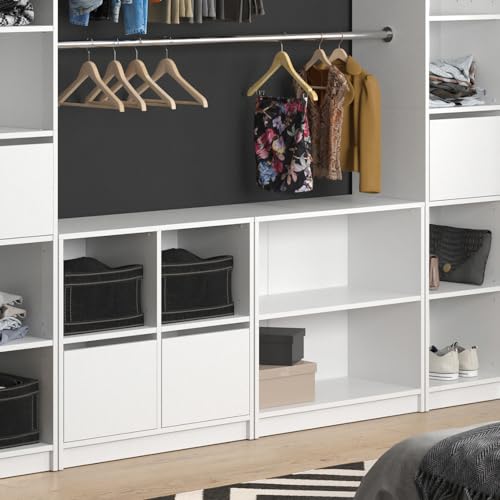 - دولاب بباب مزدوج متعددة الاستخدامات كجزء من نظام الضيوف المعياري مع أرفف مفتوحة يمكن تعديلها لتوفير مساحة تخزين إضافية.