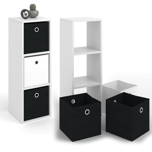Vicco - فيجو مقسم للغرف من هيلدا يتضمن صناديق قابلة للطي، رف قائم ابيض للكتب ورفوف المكتب (3 اقسام)، خشب