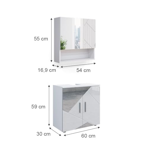 Vicco - دولاب حمام ايرما عصري، دولاب متوسط الحجم وطويل بمراية للتزين، دولاب حائط أنيق (طقم أثاث حمام من 1 قطعة)، من فيكو