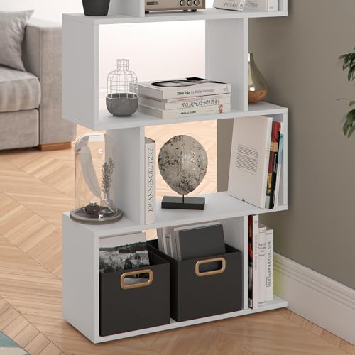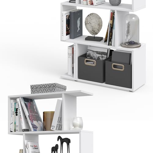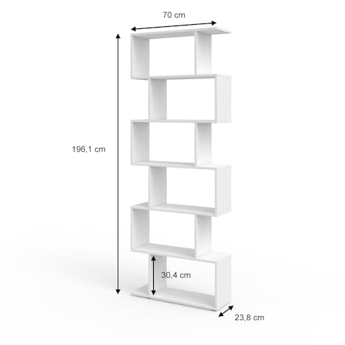 Vicco - فيجو خزانة كتب مقسمة للغرفة من ليفيو، رف تخزين مرتفع (ابيض غير لامع)، خشب