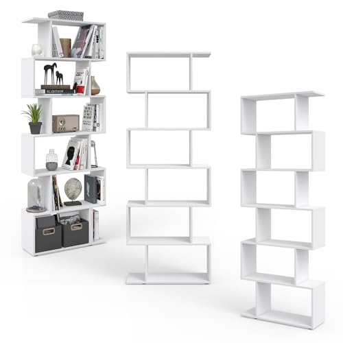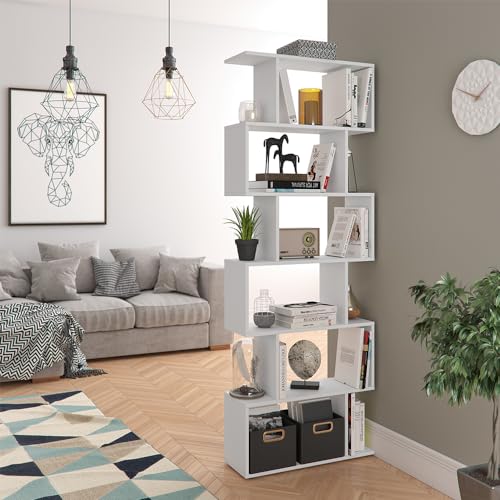 - يوفر رف تخزين الكتب القائم 6 أرفف مفتوحة بتصميم متعرج مناسب للاستخدام الأفقي أو العمودي.