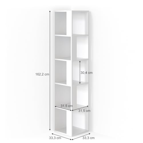 Vicco - رف زاوية للكتب، رف حائط مقسم للغرفة، 5 مستويات (أبيض) من فيجو ليو، خشب مُصنع