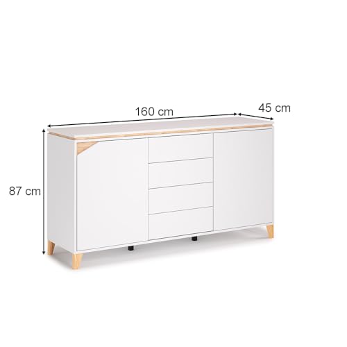Vicco - خزانة لويزا جانبية من فيجو، أبيض/بلوط، 160 × 87 سم