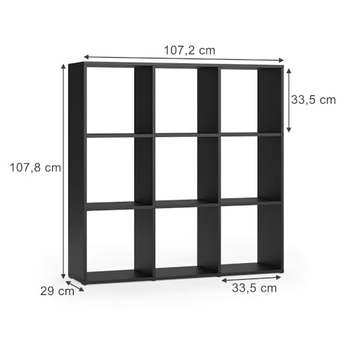 Vicco - خزانة كتب نوف مكونة من 9 أقسام للغرف من فيكو، رف تخزين الملفات (لون أسود)