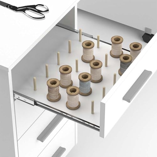 - توفر طاولة الخياطة فيرونا من فيكو ذات العجلات مساحة لأدوات الحرف اليدوية، مثل خيوط الخياطة المثالية لغرفة النوم.