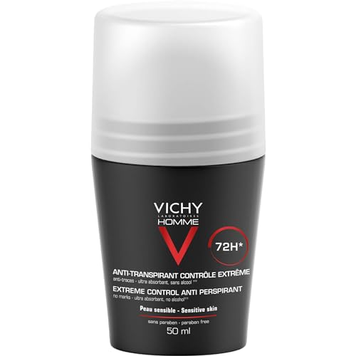 VICHY - مزيل عرق رول-اون من ڤيشي بدون رائحة للرجال، سعة 50 مل، حماية لمدة 72 ساعة وخالٍ من الكحول والبارابين
